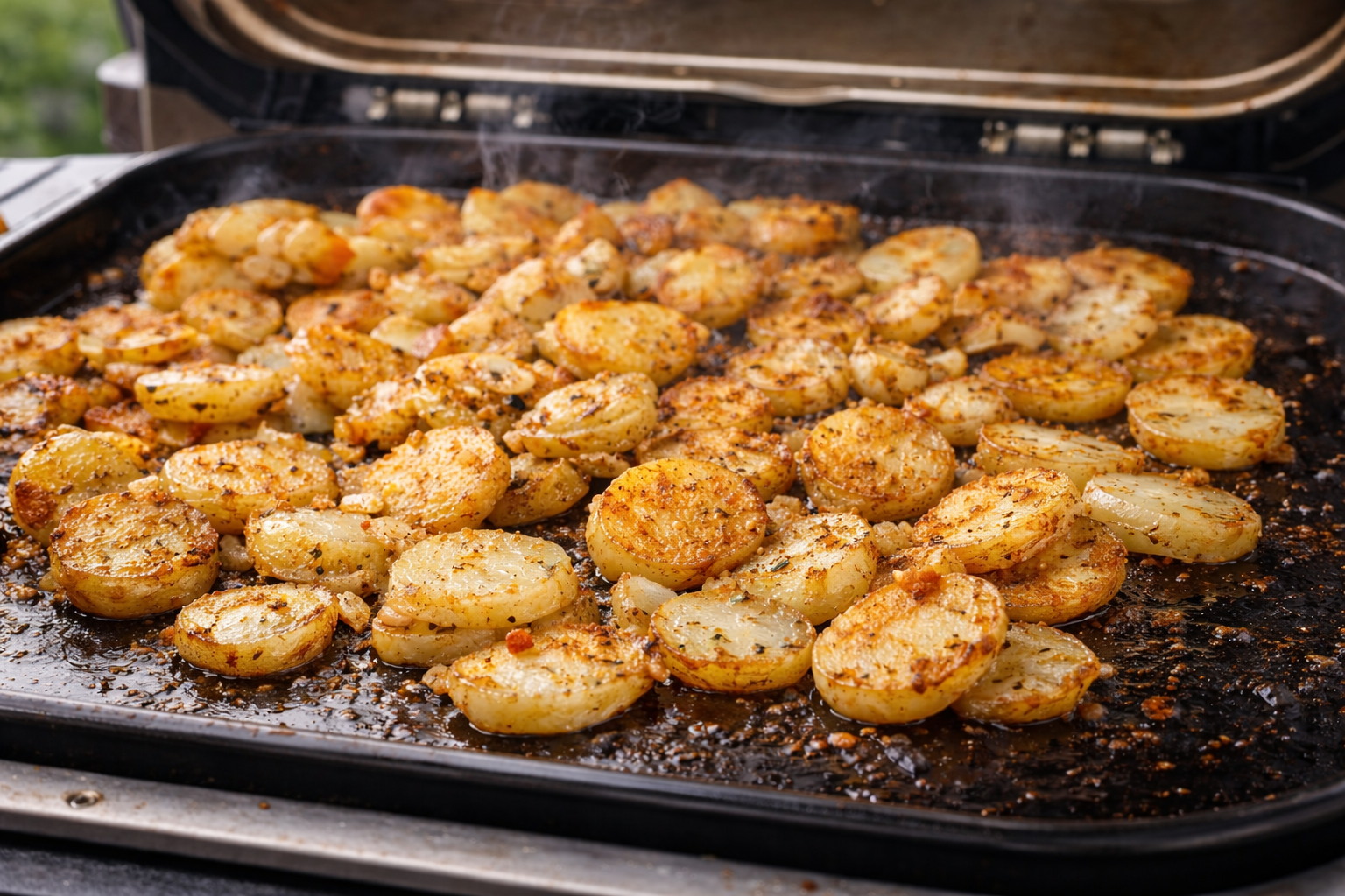 Crispy pan-fried potatoes from the griddle